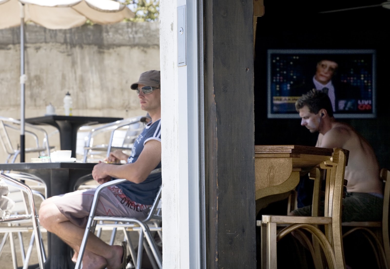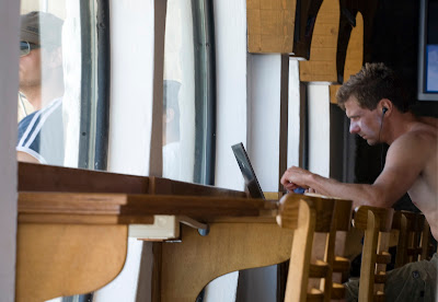 Ésta es una de los fotos que a mi parecer representa lo que acabo de explicar. La tomé mientras se esperaba a que subiera el viento de nuevo para poder navegar. La conclusión sería aquello de: conectados. No sólo a través de la red, sino con ellos mismos, sus pasiones y sobre todo con la naturaleza. Se puede.