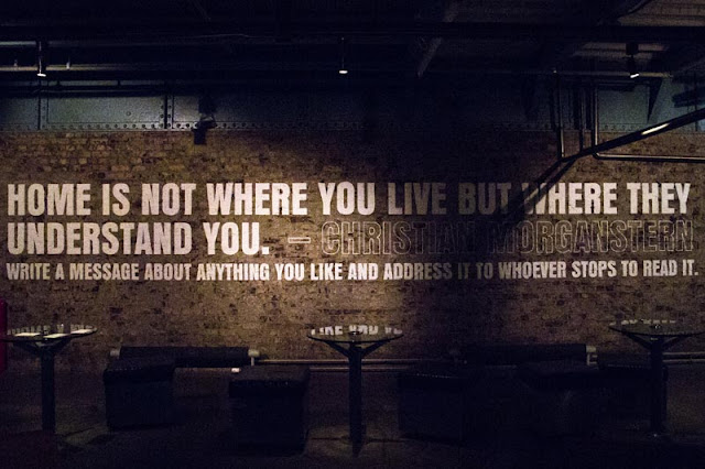 Fue después de sentarnos en su sillón y leer su biografía, típica de un revolucionario de su tiempo, cuando llegamos a aquella sala coronada por un muro gigante. Un muro gigante y un mensaje no menos grande. «El hogar no es donde vives, sino donde te entienden»- Christian Morganstern.