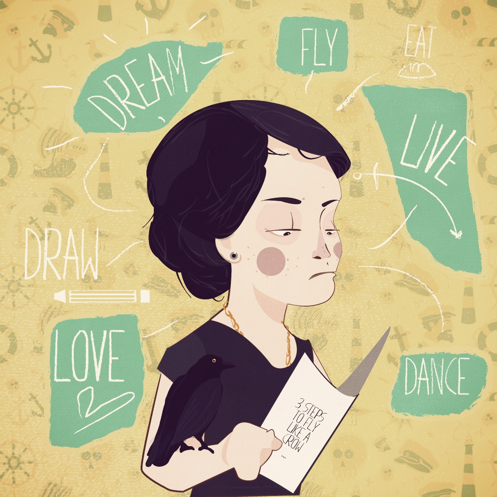 Juliana Cuervo es una colombiana afincada en Argentina desde hace un par de años. A mi entender de «cuervo» tiene bien poco excepto su manera de volar. Es una ilustradora «apasionada» que encuentra inspiración en todo pero sobre todo en el cine y en la inocencia. Actualmente está acabando su carrera de animación. Sus colores endulzan mi mirada y sus trazos tocan mis entrañas. Es una obsesionada de las palomitas y del pastel de queso. Y a mí, me tiene fascinada.